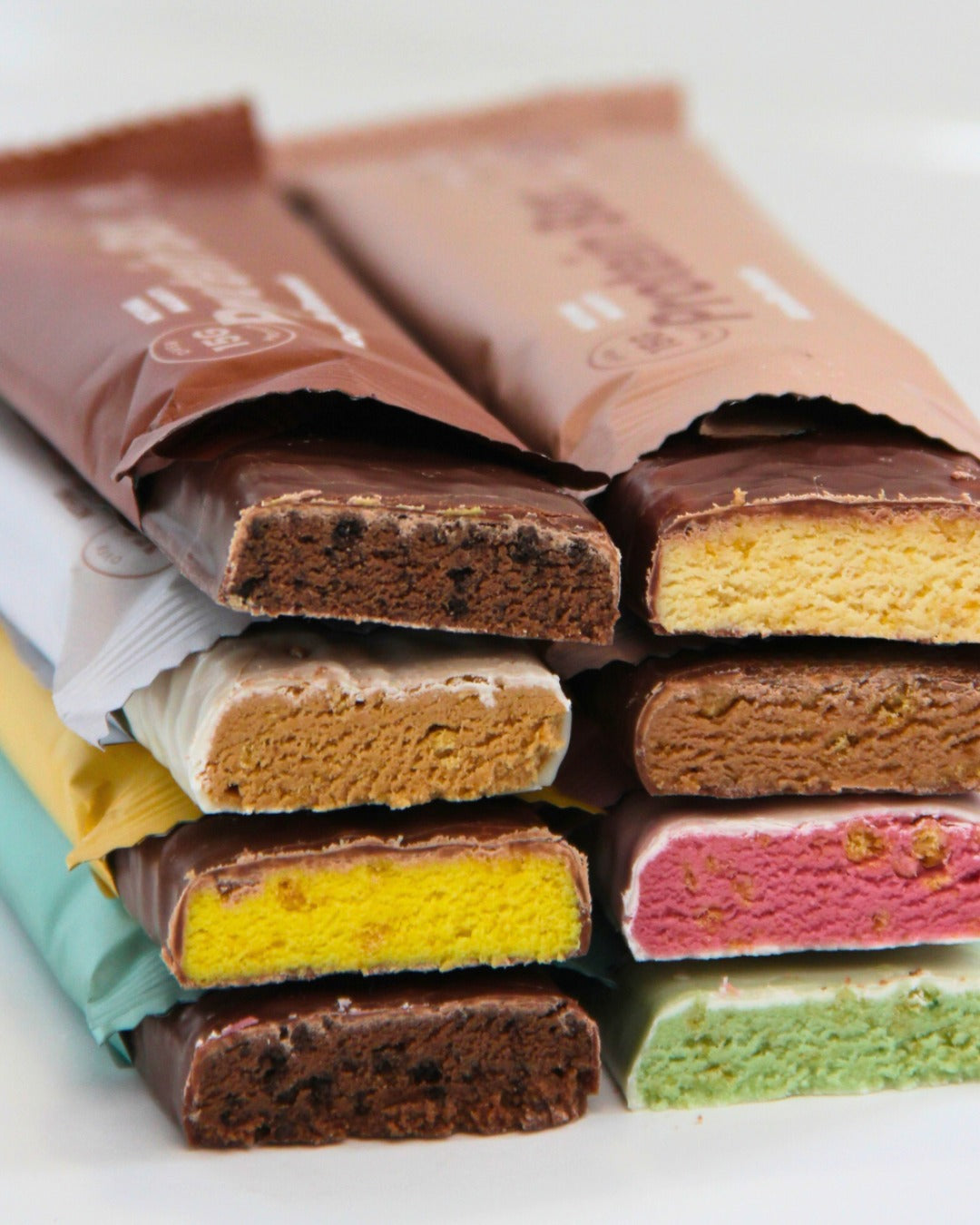 Mixed Box Flavours: Pineapple, Chocolate Brownie, Chocolate Mint Cookie, Lime White Chocolate, Raspberry White Chocolate, Vanilla Bean, Flat White, and Salted Caramel.