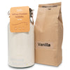 Stored in our stylish reusable glass jars perfect for refilling with our protein refills or other pantry goods! Order your Whey Protein Isolate Refills Here