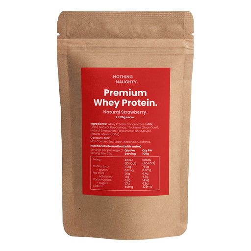 Premium NZ Whey Protein Powder Samples Each sachet contains 2 x 25g serves Nothing Naughty NZ Whey Protein is a premium protein powder made from gr...