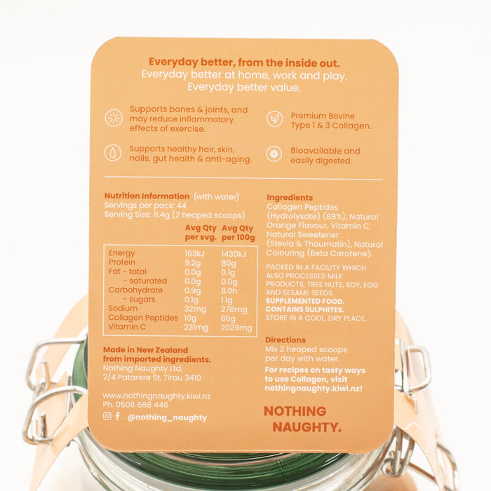 Pure Collagen & Vitamin C - Valencia Orange: Servings Per Pack: 44, Serving Size: 11.4g (2 heaped scoops)